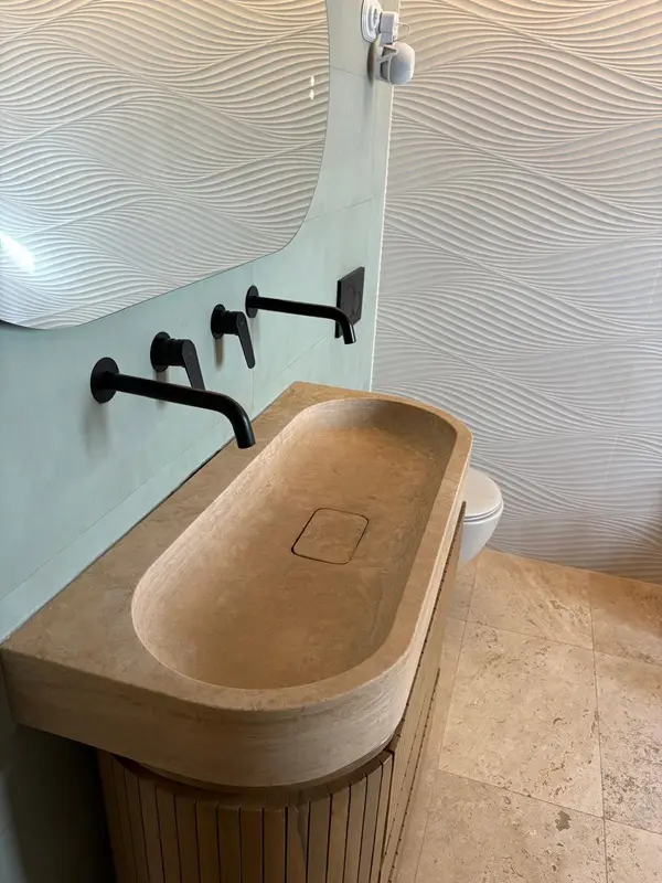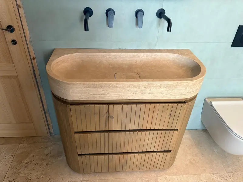 ENCIMERA ESPECIAL A MEDIDA, TRAVERTINO ROMANO BLOQUE MACIZO.